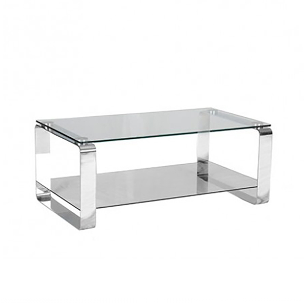 این میز اداری با دارا بودن دو طبقه، فضای گسترده ای را در اختیار کاربر قرار می دهد. این جلومبلی دارای پایه فلزی با پوشش کروم نیکل است که این پوشش پایه را در برابر سایش و خط خوردگی مقاوم می کند. رویه میز جلومبلی نیلپر و طبقه آن از جنس شیشه سکوریت با مقاومت در برابر ضربه و شکستن است. به منظور استقرار مناسب این میز جلومبلی مدرن و کاهش صدا در هنگام جا به جایی، در زیر پایه های میز از پاشنه لاستیکی استفاده شده است.