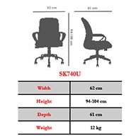 عرض نشیمن: 49 سانتیمتر عمق نشیمن: 48 سانتیمتر ارتفاع نشیمن: 54-45 سانتیمتر ارتفاع دسته تا زمین: 73-64 سانتیمتر |